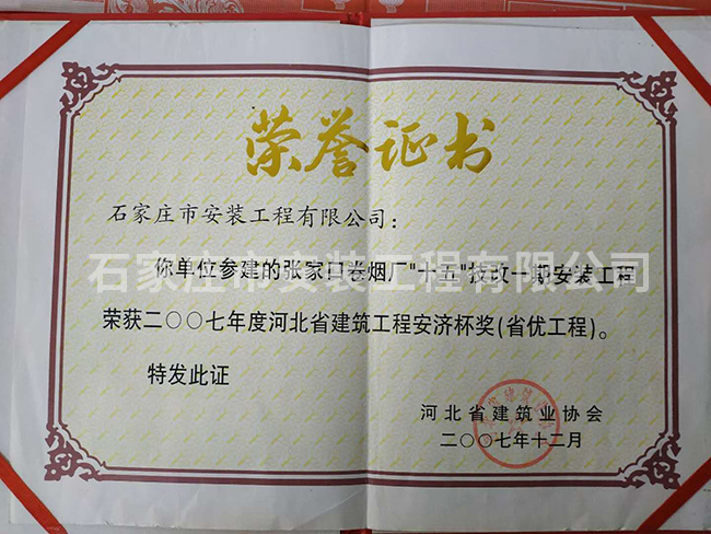 2007年度河北省建筑工程安濟(jì)杯獎(省優(yōu)工程)