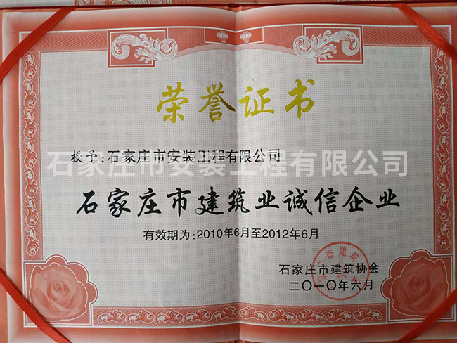 石家莊市建筑業(yè)誠(chéng)信企業(yè)