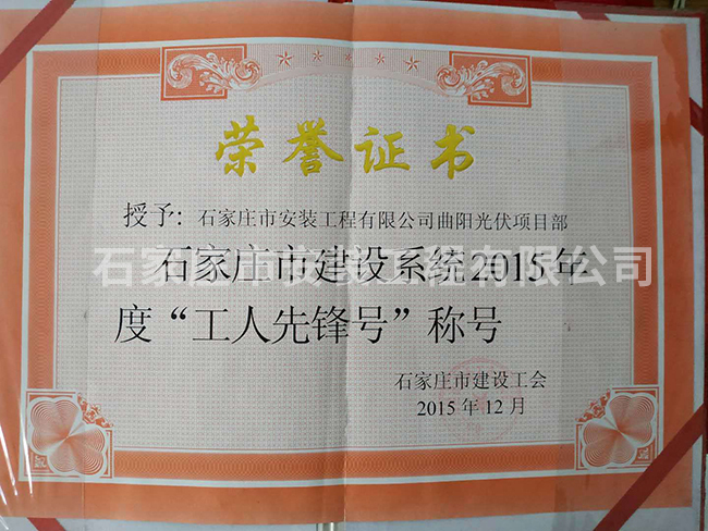 石家莊市建設系統(tǒng)2015年度“工人先鋒號”稱號